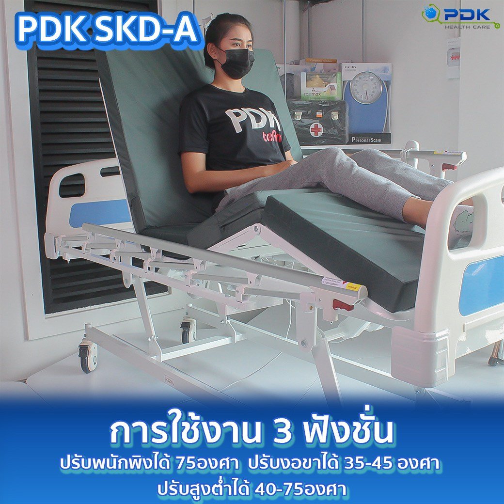 สามารถทำงานได้3ฟังชั่น สามารถปรับด้านศรีษะได้ เพื่อให้ผู้ป่วยลุกทานอาหารได้สะดวก และปรับขายกสูงเพื่อให้เลือดไหลเวียนได้สะดวก