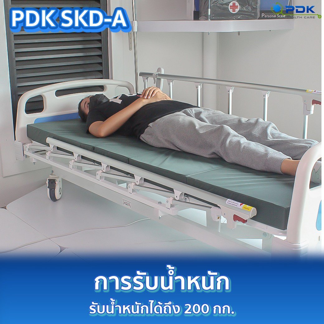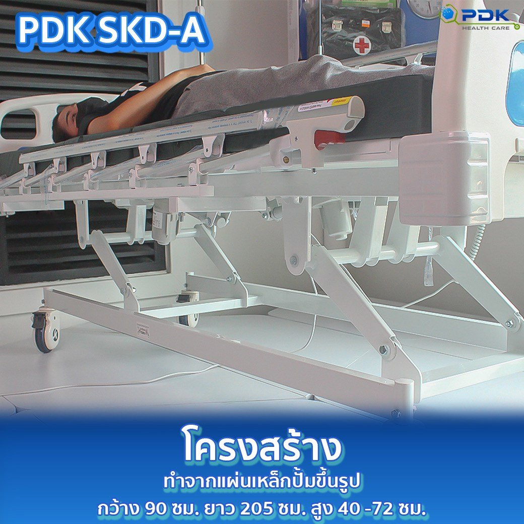 ทั้งนี้สามารถปรับระดับสูงต่ำจากพื้นได้ ทำให้ไม่ต้องยกผู้ป่วย เคลื่อนย้ายผู้ป่วยได้สะดวกรวดเร็ว และยังป้องกันอุบัตเหตุที่อาจเกิดขึ้นได้